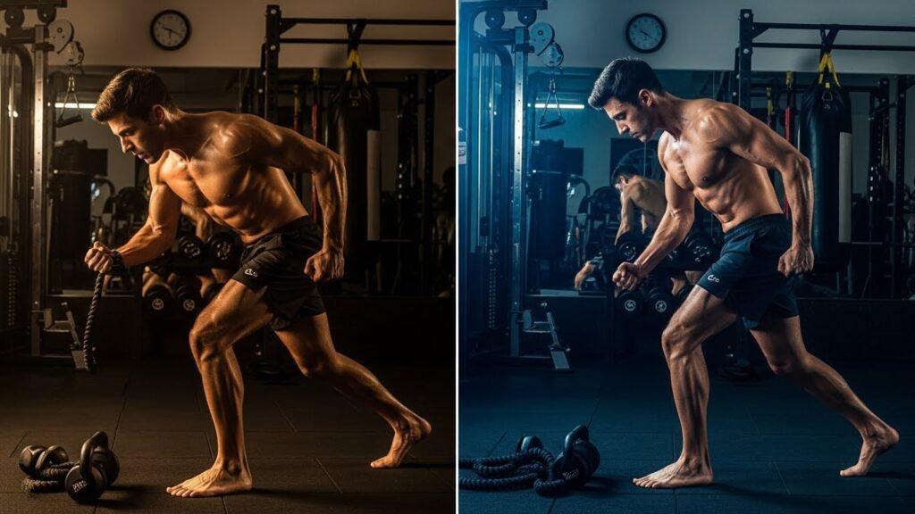 A preparação física frequentemente serve como catalisador para estados emocionais extremos em atores profissionais. Mudanças dramáticas no corpo podem alterar profundamente a psicologia e o humor de uma pessoa, e artistas dedicados utilizam essa conexão mente-corpo estrategicamente. Christian Bale é famoso por suas transformações físicas radicais, perdendo 28 quilos para “O Operário” e depois ganhando massa muscular para “Batman Begins”. Essas alterações não são apenas estéticas; a privação alimentar ou o treinamento físico intenso afetam diretamente hormônios, energia e estado emocional. Atores interpretando personagens viciados em drogas podem adotar privação de sono e dietas extremas para simular os efeitos físicos da dependência. Para papéis de atletas ou soldados, o treinamento militar ou esportivo rigoroso não apenas molda o corpo, mas também desenvolve disciplina mental e resistência emocional que informam a performance. Obviamente, essas transformações devem ser supervisionadas por profissionais de saúde para evitar danos permanentes.