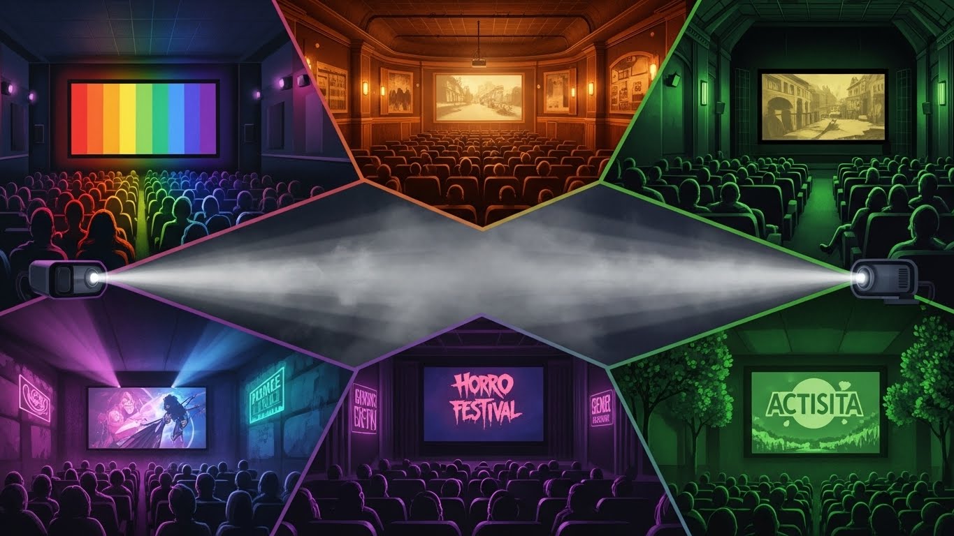 Enquanto festivais mainstream recebem maior atenção midiática, festivais de cinema especializados desempenham papéis culturais únicos e essenciais preservando e promovendo cinematografias específicas. Festivais LGBTQ+ como Frameline em San Francisco e Outfest em Los Angeles fornecem plataformas cruciais para narrativas queer que enfrentam discriminação em distribuição comercial. Festivais de cinema negro como Pan-African Film Festival e Blackstar celebram e amplificam vozes de cineastas africanos e da diáspora. Festivais de documentário como IDFA (Amsterdã) e Hot Docs (Toronto) elevaram o documentário a forma artística respeitada e comercialmente viável. Festivais de gênero como Fantastic Fest e Sitges celebram horror, ficção científica e fantasia frequentemente menosprezados pela crítica mainstream. Esses festivais de cinema especializados criam comunidades apaixonadas, preservam histórias cinematográficas alternativas, e frequentemente antecipam tendências que eventualmente influenciam cinema mainstream. Festivais ambientais, de direitos humanos, e temáticos específicos utilizam cinema como ferramenta de ativismo e mudança social, demonstrando o poder transformador do meio.