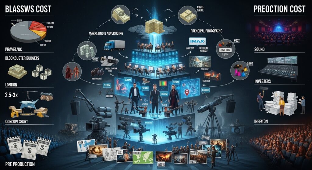 Múltiplos fatores contribuem para inflação de custos. Salários de estrelas e diretores aumentaram exponencialmente conforme poder de bilheteria se concentrou em nomes reconhecidos. Efeitos visuais tornaram-se padrão e cada vez mais sofisticados, consumindo porções maiores de orçamentos. Expectativas de audiências por espetáculo visual elevaram-se, forçando estúdios a investir mais para impressionar. Marketing global intensificou-se conforme mercados internacionais tornaram-se cruciais, exigindo campanhas coordenadas em dezenas de países. Inflação geral e custos crescentes de produção (locações, equipamento, seguros) contribuem. Finalmente, competição entre estúdios por mesmos weekends de lançamento prime força investimentos defensivos maiores.